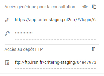 Les informations d'accès (générique et dépôt FTP) sont envoyées automatiquement et séparément par mail à des adresses fonctionnelles ASNR.