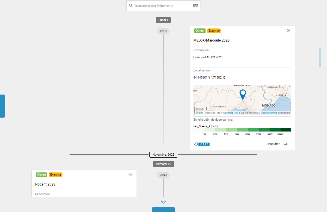 Accessible au seul rôle Administrateur, cette vue chronologique se présente sous la forme d'une liste d'évènements à faire défiler.