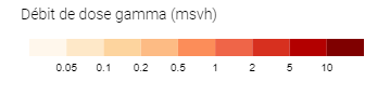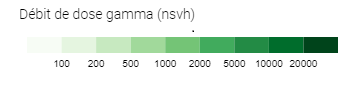 Appliqué aux seules mesures de débit d'équivalent de dose, ce mode de représentation permet de classifier les points de prélèvements par classe de valeurs. Chaque classe est représentée par une couleur dans une échelle de couleur unique. Par exemple, les échelles possibles sont :