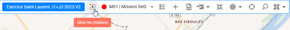 Dans ce contexte d'utilisation gestion des mesures, la gestion des missions est accessible dans la barre d'outils.